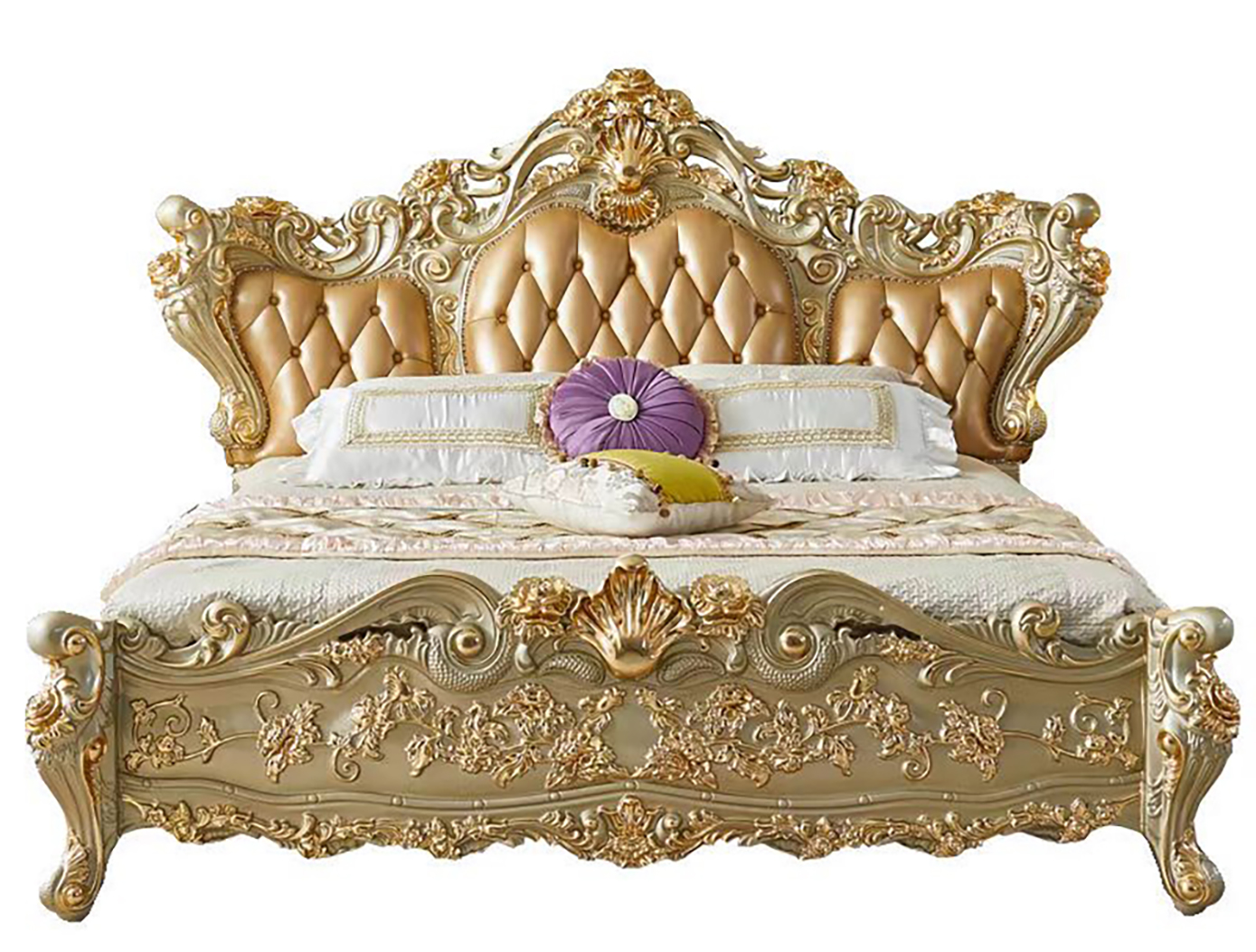 We select premium beech wood, highlighting its natural characteristics, followed by meticulous hand-carved detailing and precision sculpting. Surfaces are finely polished and smoothed, enhanced with seven layers of expert paint spraying, and adorned with 24K handcrafted gold leaf. Upholstery uses imported top-grain leather and high-quality knitted jacquard fabric, paired with 45D high-density foam. Every step is overseen by craftsmen with over 10 years of experience, ensuring each piece combines exquisite aesthetics, superior texture, and lasting durability.