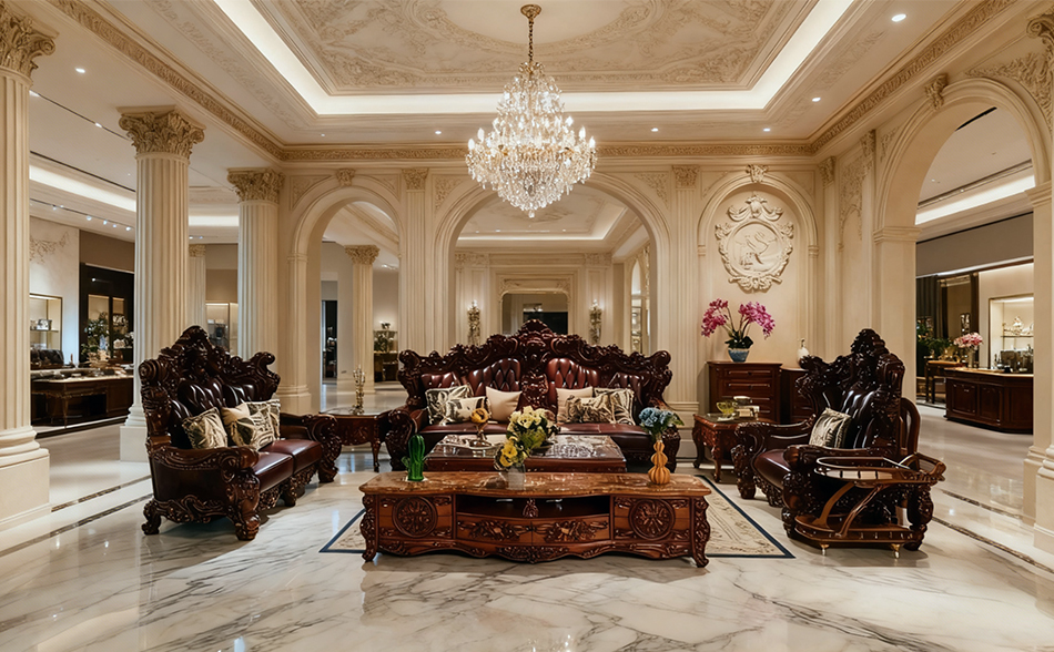 The company features a 3,000㎡ luxury showroom that beautifully showcases a wide variety of European, Italian Baroque, Palace, and Classical-style furniture. Every piece is meticulously crafted from imported beech wood, enhanced with natural mother-of-pearl inlays and handmade 24K gold leaf, and completed through 24 professional production processes. The showroom provides bespoke and personalized services, catering to full-house customization needs for both residential and commercial clients. With a dedicated design team, advanced manufacturing equipment, and a comprehensive production system, we support B2B global trade and offer high-end customers unique, elegant, and stylish living spaces. Visitors can experience our craftsmanship firsthand, explore diverse design inspirations, and consult with experts for tailored solutions, ensuring every piece reflects refined artistry and superior quality.